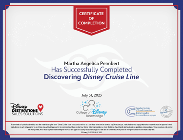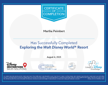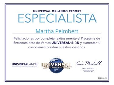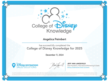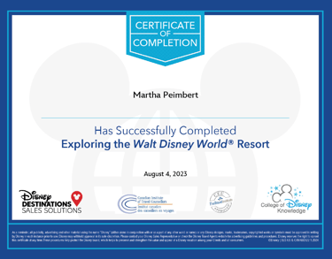 Tengo certificaciones como agente Disney, Universal Studios y de Visit Orlando, lo cual significa que estoy preparada para brindarte el mejor servicio posible.